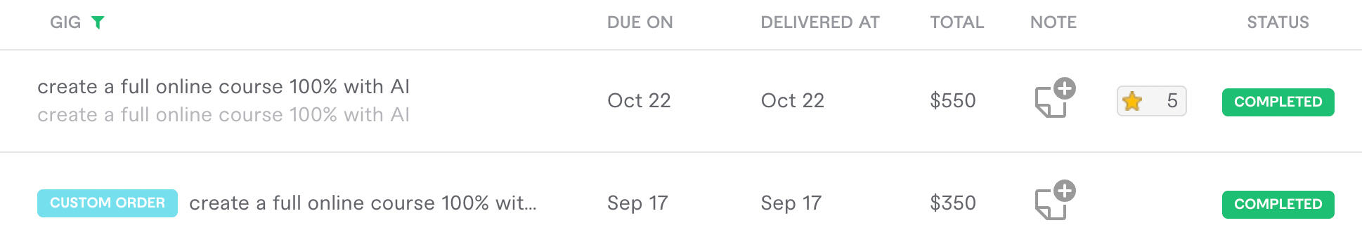 Si vous ne voulez pas créer votre formation, pourquoi ne pas vendre ce service ? Je vous montre ma méthode 2025 pour vendre des vidéos d'avatar IA à des clients (sur Fiverr ou en direct).C'est une prestation "high-ticket" car la demande est énorme et l'offre quasi-inexistante.Pour ma part, je propose ce service sur Fiverr. Je vends des cours créés par l'IA, sur mesure pour le client, entre 350$ et 550$ (entre 320€ et 500€ au taux de change actuel), pour des cours IA qui vont de 30 minutes à 1 heures.Certains vendeurs facturent même plus de 950€ pour un cours de 45 minutes !